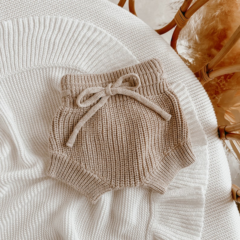 • Baby Mini Knit Shorties Bloomers - Summer - Cotton - Babies First Outfit - Photography Prop - Gender Neutral Clothing - Knit Diaper Cover